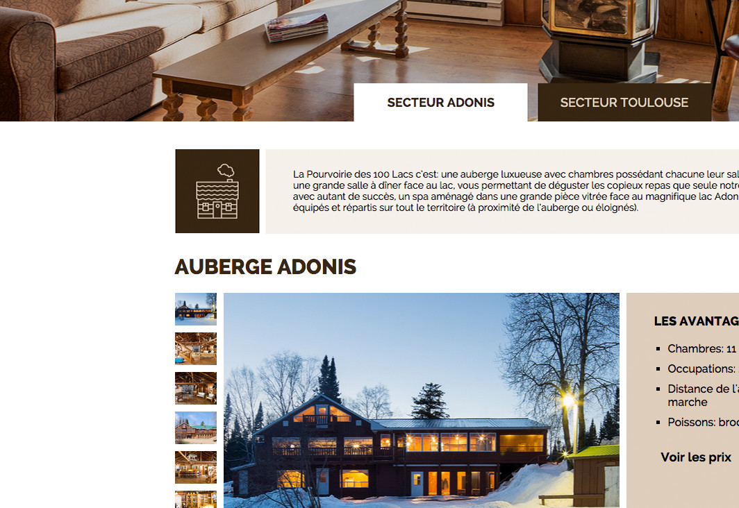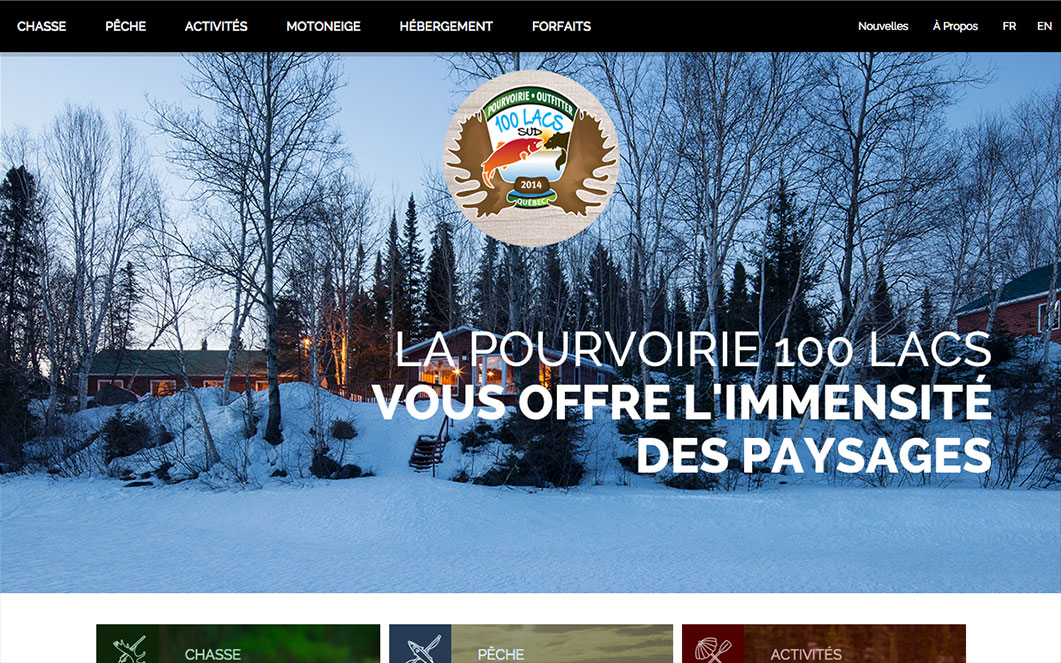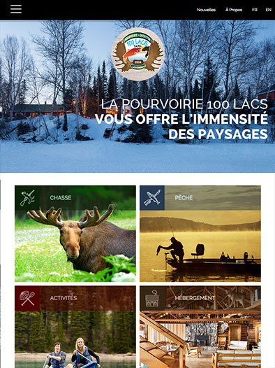 Visuellement inspirant, le nouveau site de Pourvoirie 100 lacs invite le voyageur potentiel à découvrir les activités et les attraits de la pourvoirie et, par le moyen d’un outil de réservation, planifier son prochain séjour.