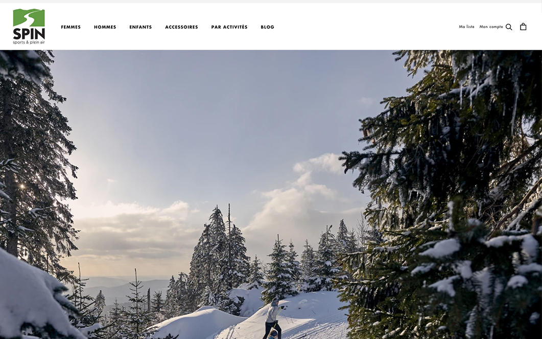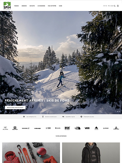 Un site est sous la plateforme Shopify, multiples catégories et large inventaire de produits.