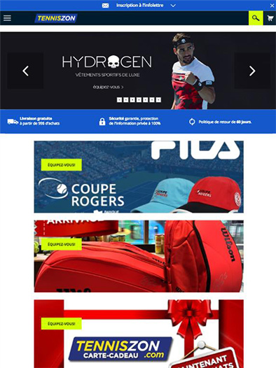 Présente sur le web depuis 15 ans, le nouveau site de Tenniszon se devait de demeurer la principale boutique de sports de raquette au Canada. Le site comporte 5 sous-sites représentant les différents sports de raquettes offerts. Chacune des pages d’accueil étant complétement personnalisable à partir de l’outil d’administration Magento.